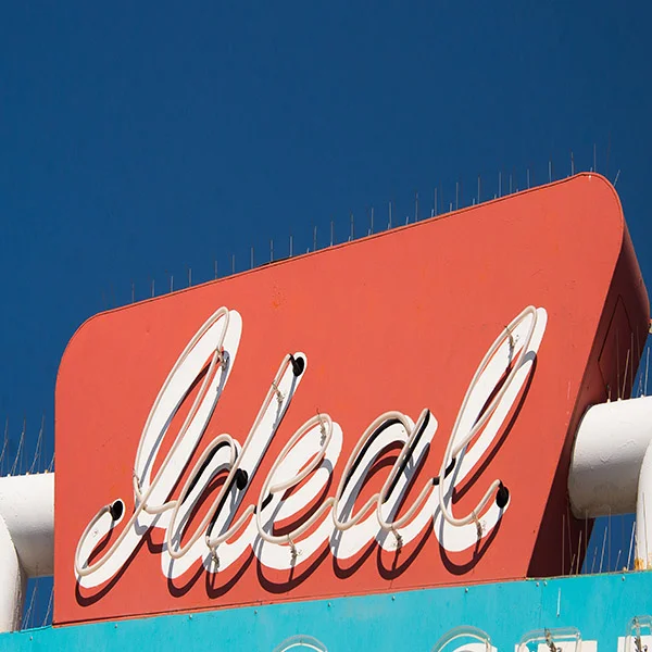 Love this "soaring" sign in nighttime neon!