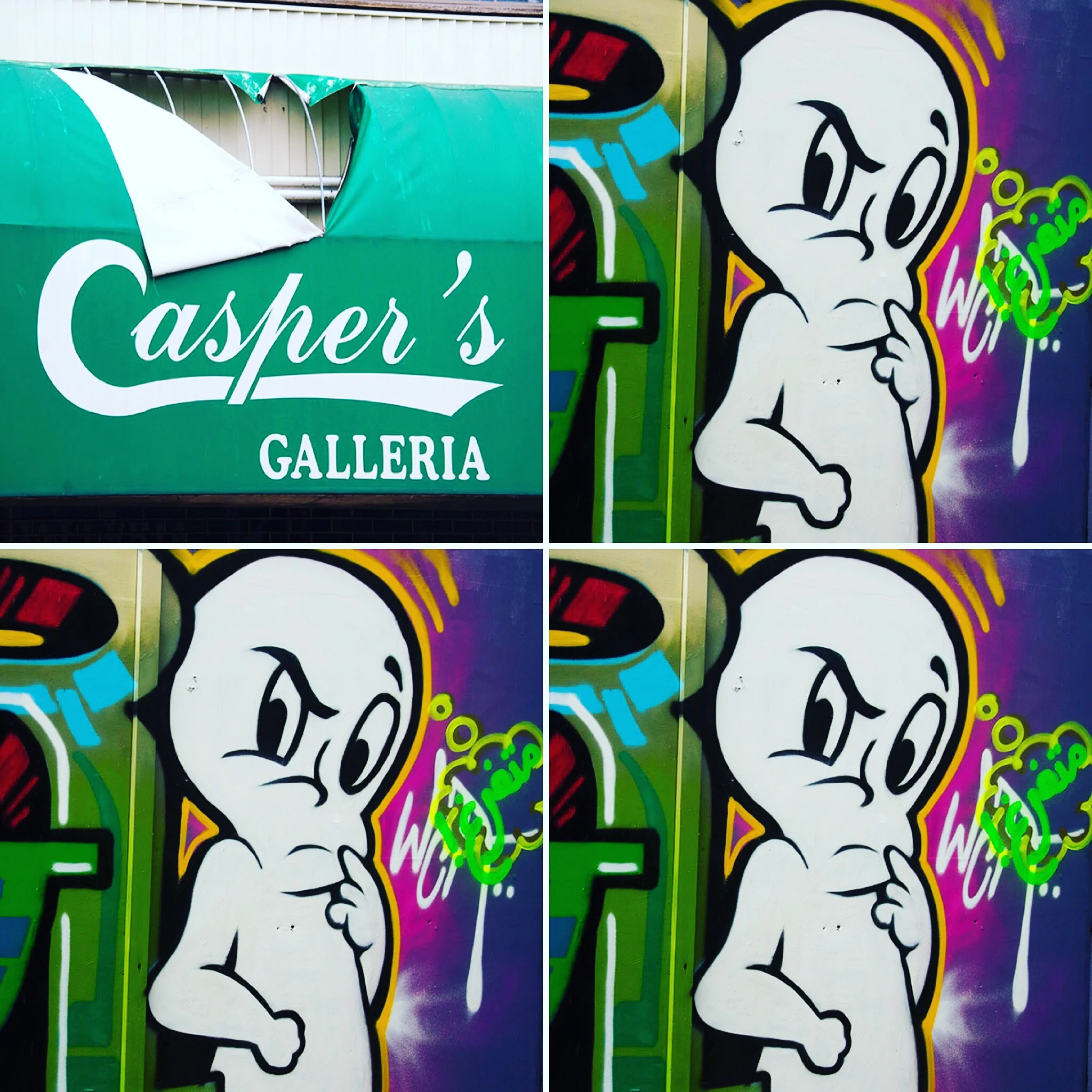 This Casper the friendly ghost is not so "friendly" looking. Maybe because someone ripped his sign!
